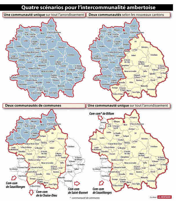 Par l’intermédiaire du Sous-préfet d’Ambert Jean-Charles JOBART les élus locaux ont été consultés sur les scénarii possibles d’évolution de l’intercommunalité dans l’arrondissement : 4 projets de découpage ont été proposés.